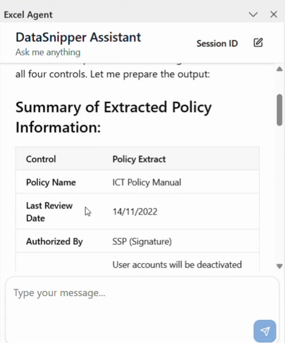 DataSnipper Excel Agents move beyond automation to bring intelligence directly into Excel. Instead of working through manual steps, you simply describe what you want to achieve and the Agent takes care of the execution. From reading source documents and reconciling data to applying audit and finance logic, Excel Agents execute complete tests end to end. The result is transparent, explainable output that is fully traceable back to the underlying evidence and ready for review.