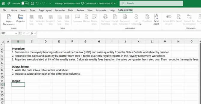 How to efficiently perform Royalty Calculations with Excel Agents