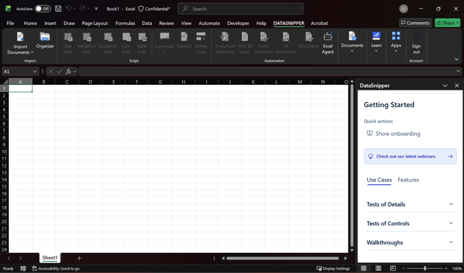 Open Microsoft Excel, and DataSnipper should be visible in the Microsoft Excel Ribbon! Import any file by clicking Import Documents to verify a full installation.
