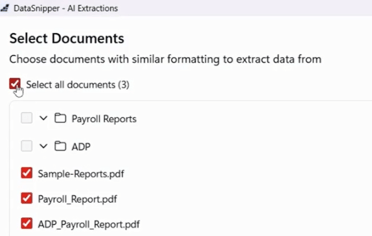 - Import your source documents. Here, we are importing a set of Payroll reports.